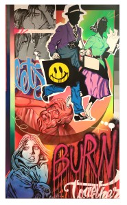 acrilico, spray y ceras base aceite sobre tela de algodon